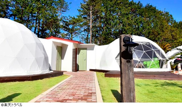 《伊豆シャボテンヴィレッジ グランピング》は、伊豆シャボテン動物公園に隣接したドーム型テントの宿